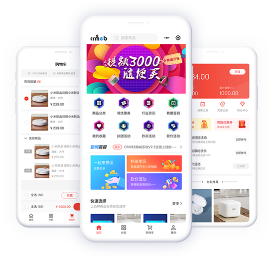 裂變紅包、分銷、秒殺、拼團、優惠券、積分商城、訂單管理、附近門店、到店自提、核銷、會員等級、余額充值、商家入駐等……